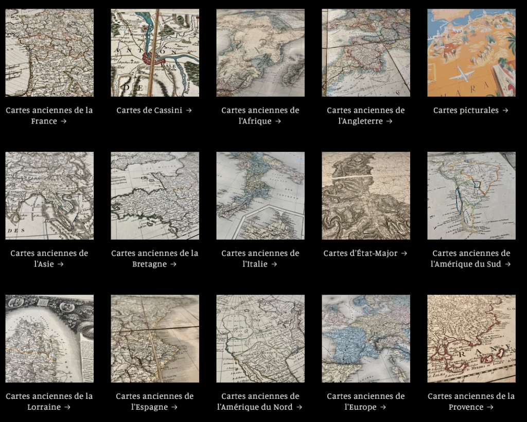 Ce site est une pépite pour trouver des cartes même très rares. La collection de milliers de belles cartes anciennes de Léopold est une véritable caverne d’Ali Baba pour amateur de cartes. Et il y en a pour tous les budgets ! Bonus : Léopold est sympa et accessible : il vous répondra directement si vous avez une demande spécifique.